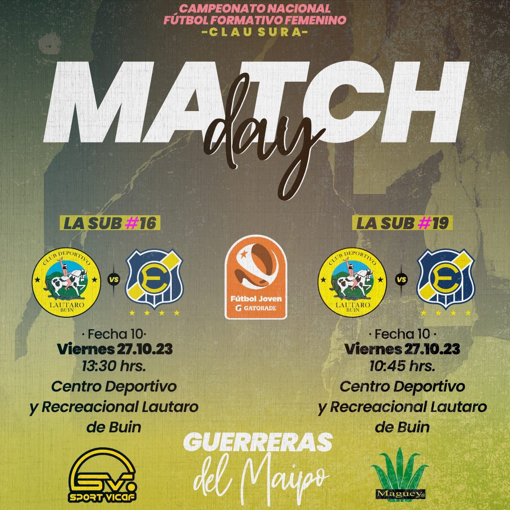 HOY COMIENZA EL CUADRANGULAR DEL MAIPO Hacemos un llamado a toda la familia Lautarina, que nos acompañen en este inicio de cuadrangular. Presentamos el fixture de la primera fecha. Colo Colo Lo Prado VS Santiago Morning HORA: 10:00 AM Lautaro de Buin Femenino VS Fac. U. de Chile HORA: 11:30 AM Los esperamos