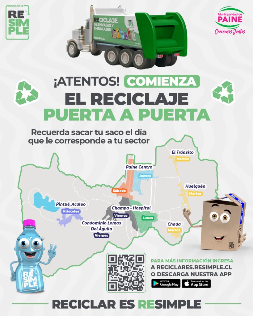 La empresa ReSimple, junto con la Municipalidad de Paine, continúan fortaleciendo su programa de reciclaje domiciliario, incorporando tecnología de punta y nuevas herramientas para facilitar la participación de los vecinos.